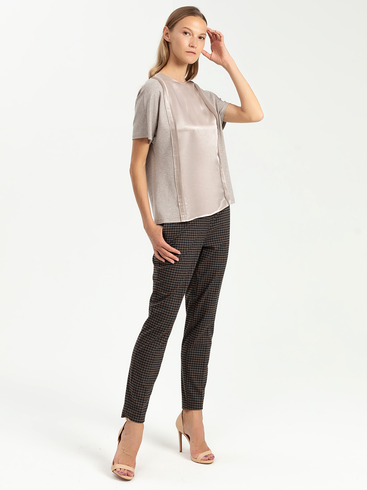 Трикотажная блуза с декоративной вставкой из шёлка.